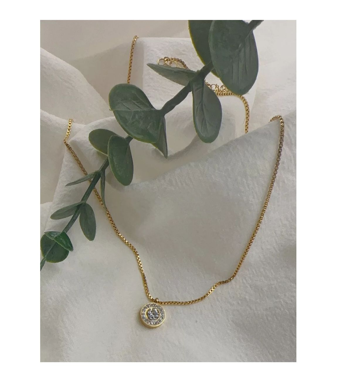 Gold-plated& white cz- studded pendant comes with a chain secured with a lobster closure
